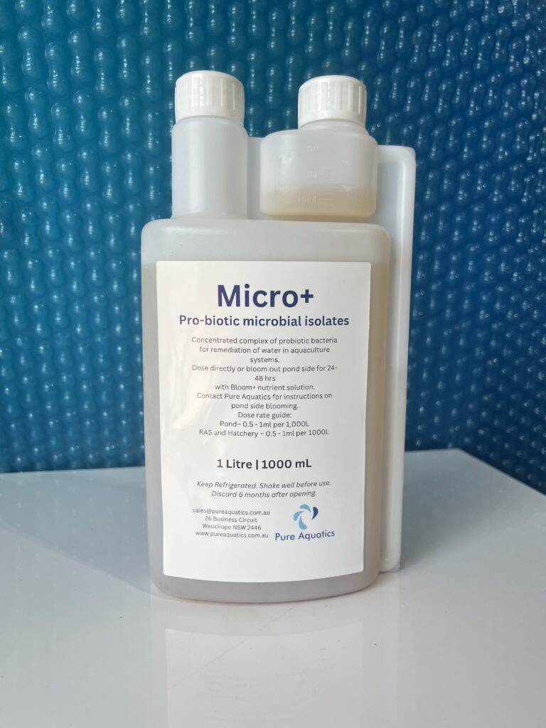 Micro+ introduces beneficial probiotic microbes that help break down organic waste, suppress harmful bacteria, and stabilise microbial ecology in freshwater systems.