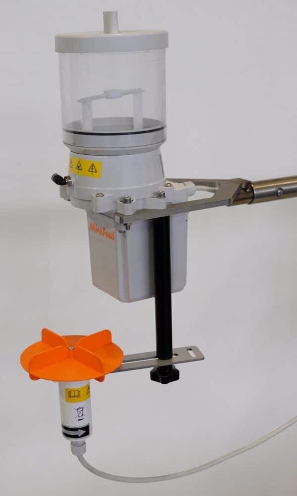 The Mirafeed 100 is Innovaqua’s entry point into precise automatic feeding — and for hatchery managers, it is one of the most important pieces of equipment in the facility. Engineered specifically for the feeding of larvae and early fry, this unit handles the full range of micro-diet feed types including powdered feeds, crumbled diets, and microencapsulated products from 50 microns up to 2mm pellet size.